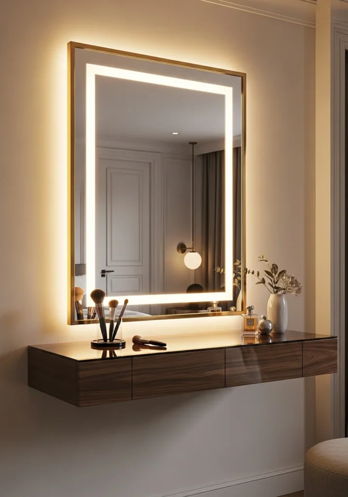This approach works particularly well in modern bedrooms where you want the vanity to feel like a luxury design feature rather than basic furniture.