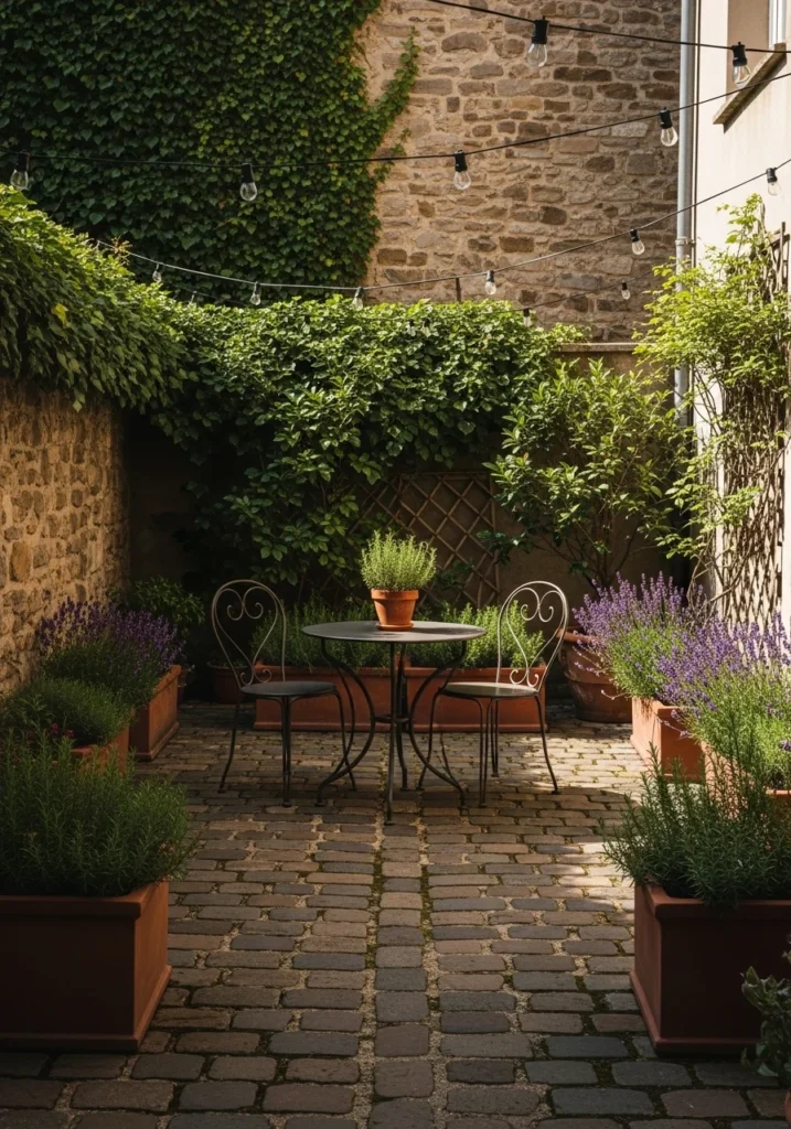 The European courtyard aesthetic works in urban townhouses, suburban yards, and even apartment patios because it’s about approach rather than size.