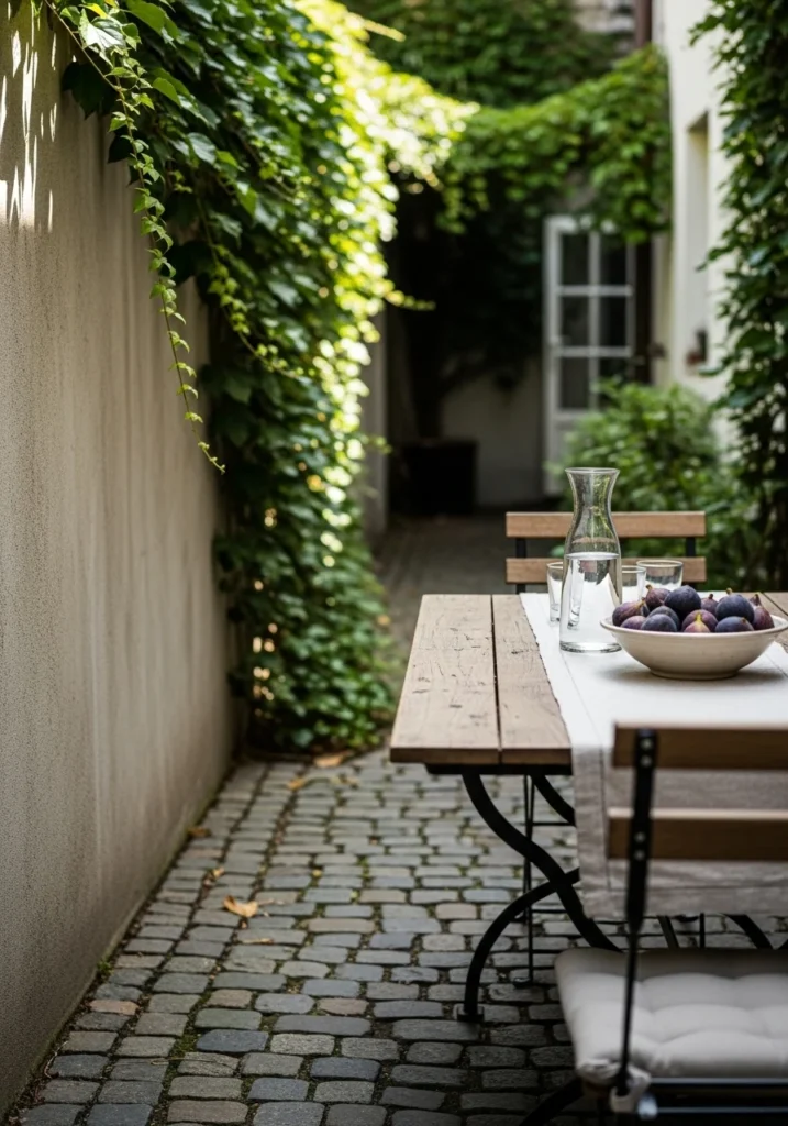 Layer in Greenery – Europeans pack in plants—herbs, climbing vines, potted trees. The density creates that lush courtyard feeling even in tiny spaces.