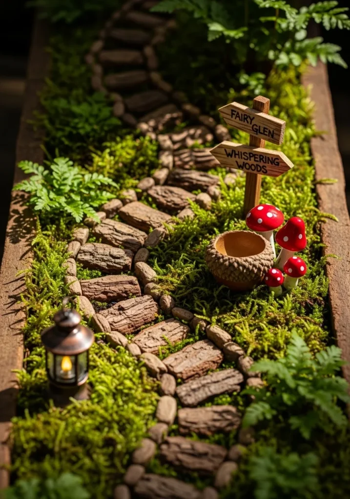 Recreate sun-drenched southern charm with warm terracotta surfaces, scaled pergolas, and miniature herb plantings. This theme translates beautifully to fairy garden scale while feeling authentic.