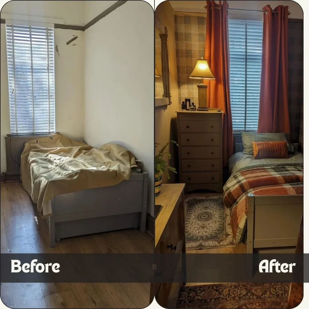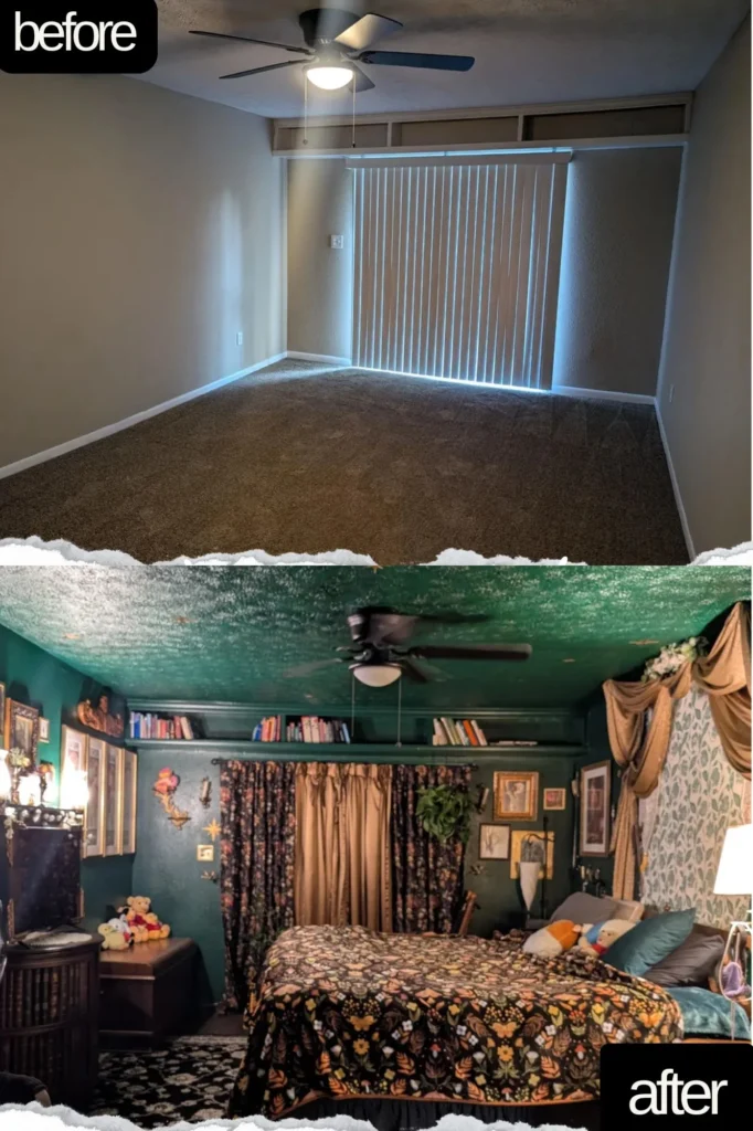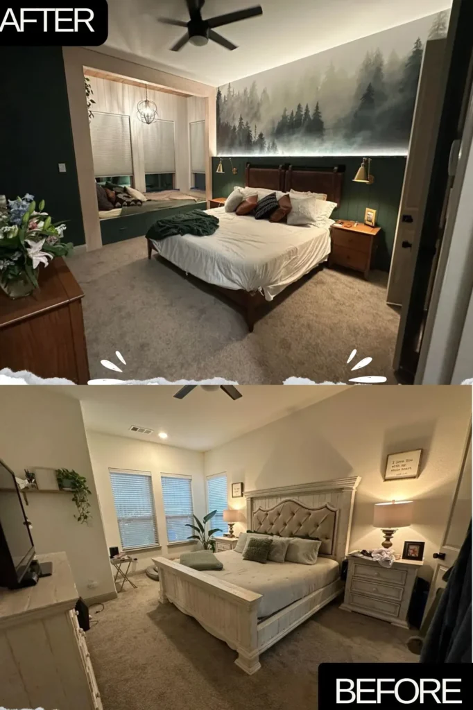 Bedroom renovations hit different than other spaces because they’re so personal. This is where the day starts and ends, where actual living happens away from everyone else. That’s why these transformations feel so satisfying – they show how paint, lighting, and thoughtful design choices can turn a basic sleeping space into something that feels genuinely special. Some went moody and dramatic, others embraced nature vibes, but every single one proves that bedroom upgrades don’t require gut jobs or unlimited budgets to make a massive impact.