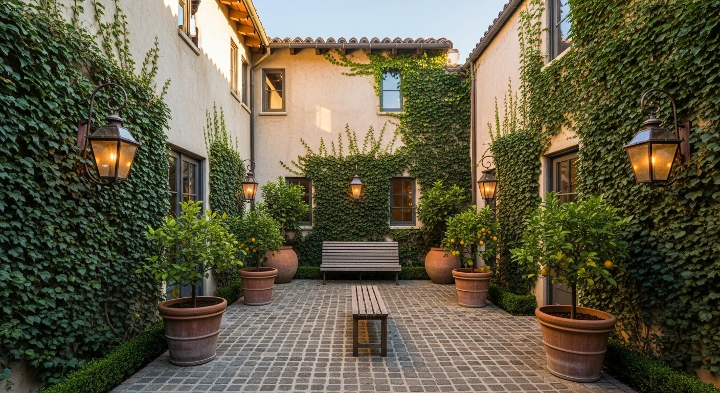 American backyards and European courtyards operate on completely different philosophies. We tend to think bigger is better—sprawling lawns, large patios,