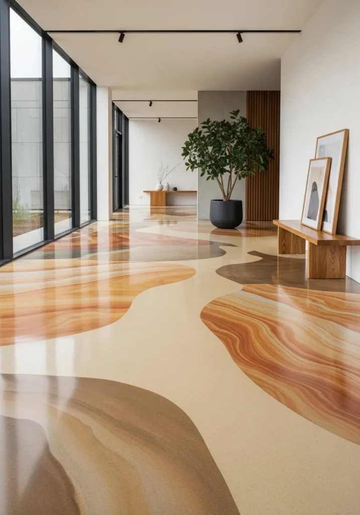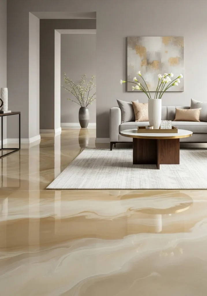 Epoxy floors have come a long way from garage workshop basics. These concepts prove that epoxy can be just as sophisticated as marble or terrazzo, sometimes even more so. From liquid marble flows to metallic champagne finishes, these flooring ideas show how the right epoxy design can completely redefine a space. The best part? That seamless, reflective surface that makes rooms feel twice their actual size.