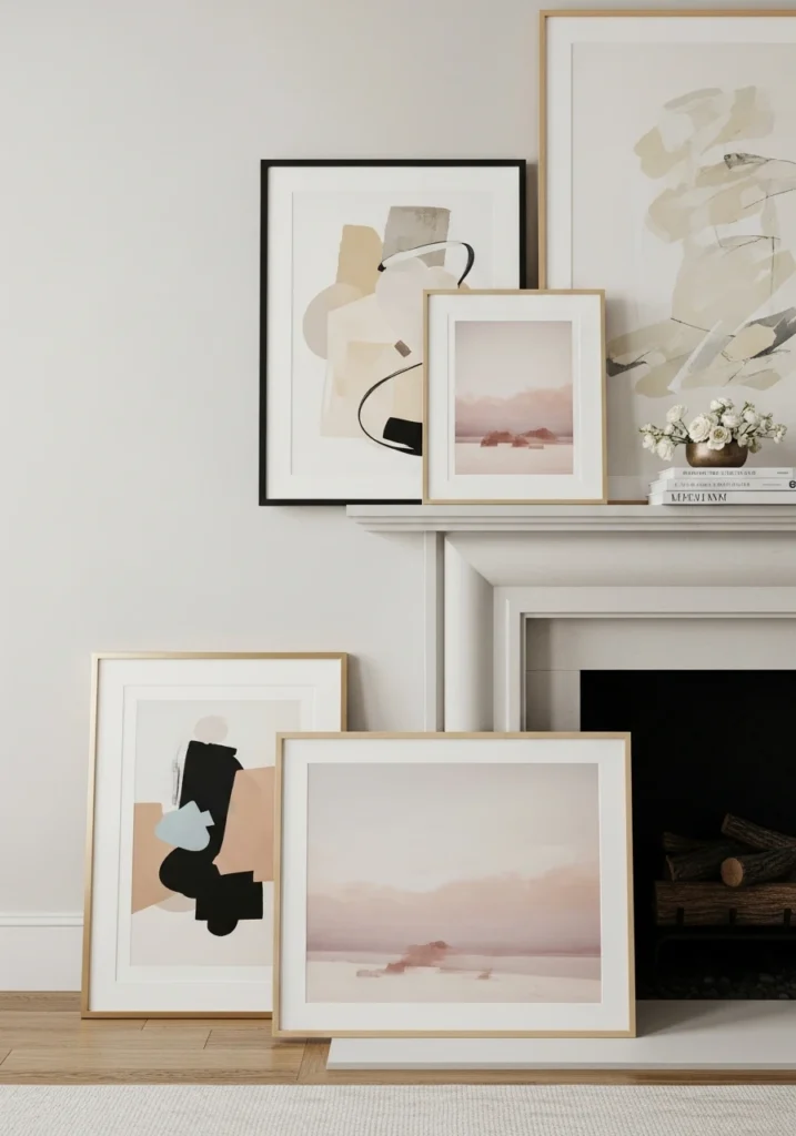 Editorial Art-Layered Fireplace Decor
