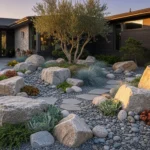 Want your yard to look as punctual and put-together as your most type-A friend? Go full executive mode with hand-polished black granite blocks for a razor-sharp edge between your lush grass and pristine white pebble beds. Lay each granite block with hawk-eyed precision—no sloppiness allowed—and go for those chamfered edges because, let’s keep it boujee, shadow lines are a flex. Add a low-profile LED strip along the base to get that twilight runway look, and make your shrubs earn their keep: trim them into geometric shapes so everything feels deliberate, not wild. Pro tip: never skimp on aligning your blocks—crooked stones are banned. If you’re going luxe, go all-in or not at all.