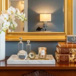 Yes, a lamp. On your kitchen counter. If that sentence made you nervous, congratulations — you’ve been playing it too safe. A small vintage lamp with a floral shade tucked between a stack of warm-spined cookbooks and a retro kettle on a wooden trivet transforms a counter from functional surface to actual living space. The lamp does something overhead lighting categorically cannot: it creates a pool of warm, personal light that makes your kitchen feel inhabited rather than merely operational. A small digital frame propped alongside it adds the finishing touch of a space that belongs to someone with taste and opinions. Rule: the lamp only works if everything around it is edited — one lamp, a tight book stack, one hero appliance, and nothing else competing for attention.