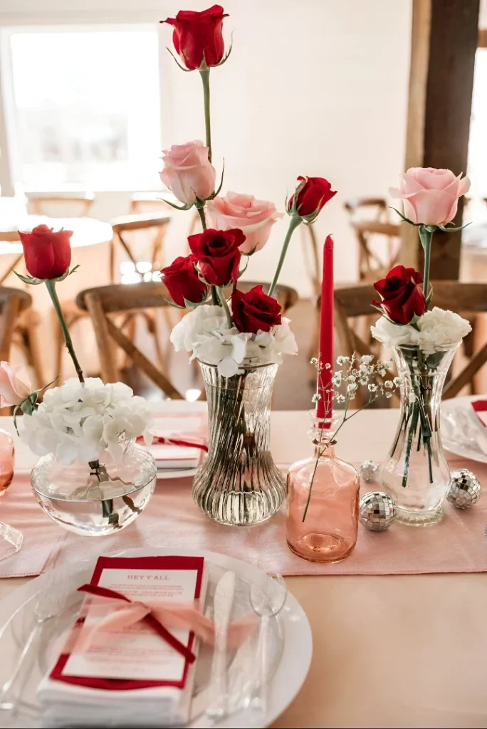 Mixed Height Modern Valentine’s Tablescape with Rose Drama